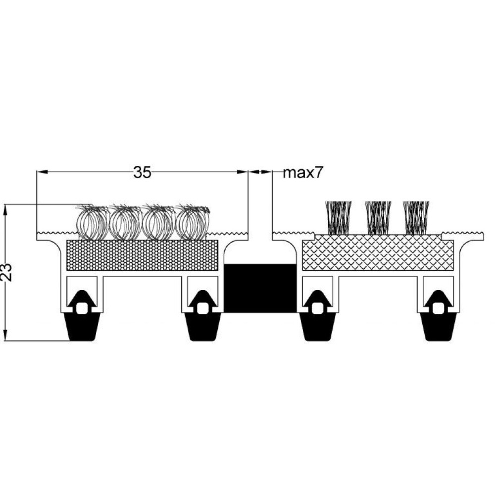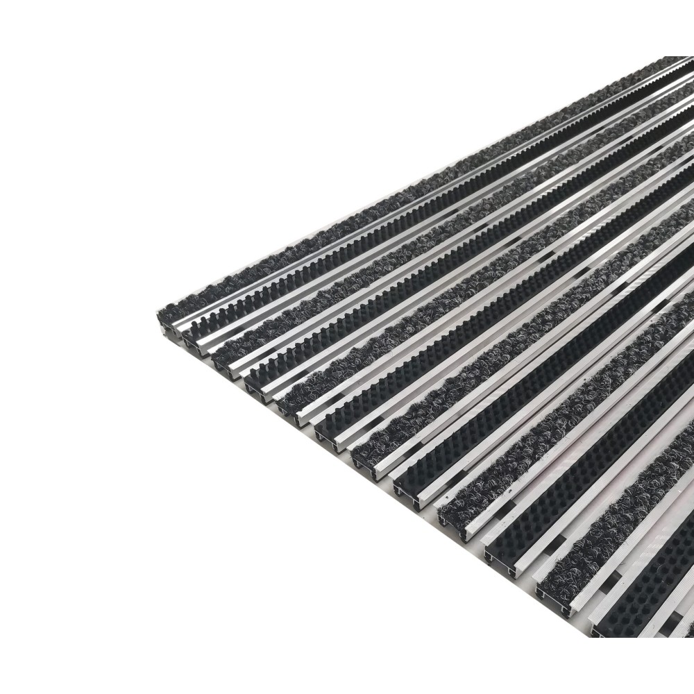 Алюминиевый профиль решётка. Вставка: ворс-щетка — практичное решение для использования дома, в офисе и в коммерческих помещениях. Качественный материал обеспечивает долговечность и удобство эксплуатации.