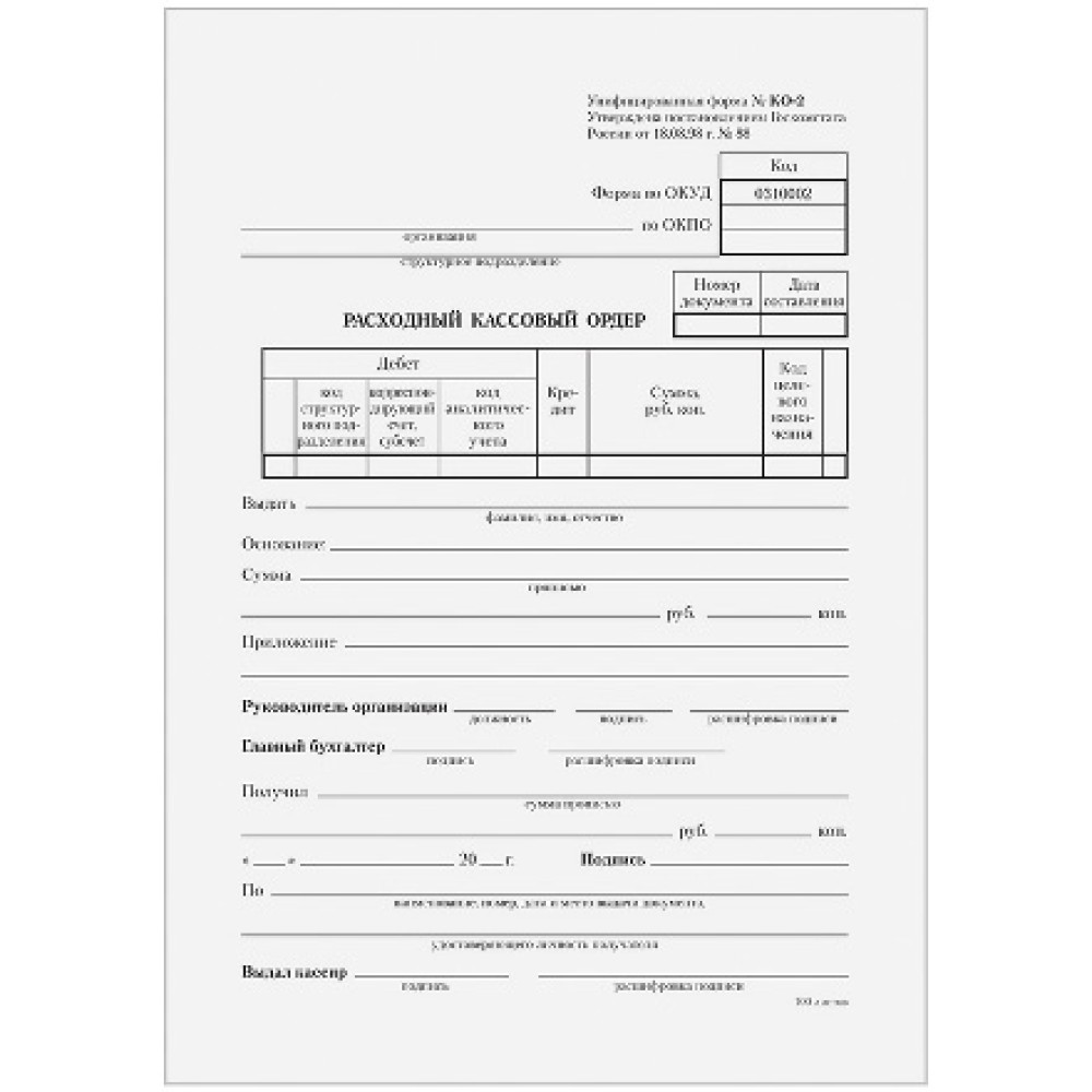 Бланк Расходный кассовый ордер А5 газетка 100 л. (1/20 шт.) — купить в Екатеринбурге