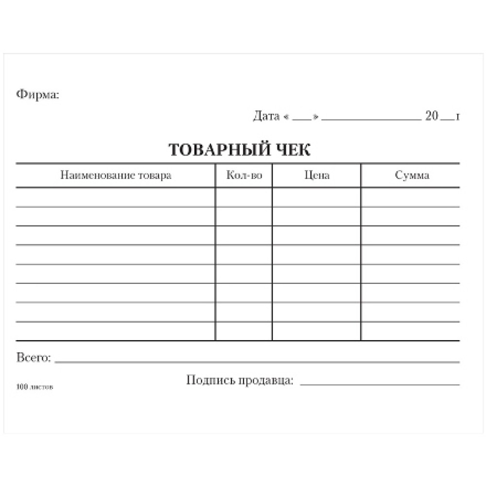 Бланк Товарный чек А6 офсет 100 л. (1/40 шт.) — купить в Екатеринбурге