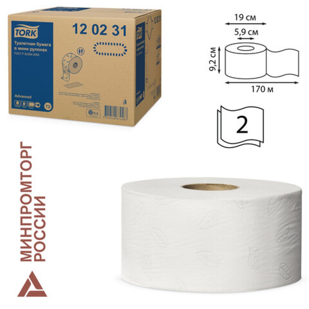 Бумага туалетная 170 метров, Tellus/TORK (Система T2) ADVANCED, КОМПЛЕКТ 12 рулонов, 2-слойная, белая, 120231 — купить в Екатеринбурге