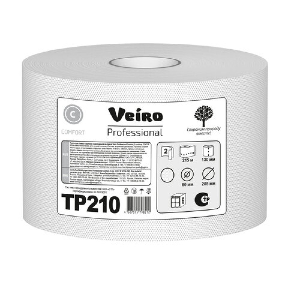 Бумага туалетная 215 м, VEIRO (Система T8), КОМПЛЕКТ 6 шт., с центральной вытяжкой, Comfort, 2-слойная, TP210 — купить в Екатеринбурге