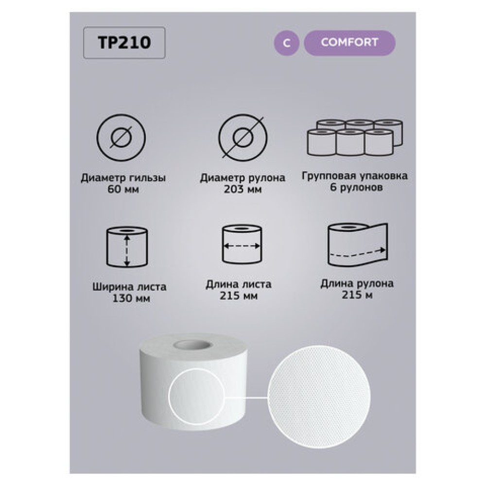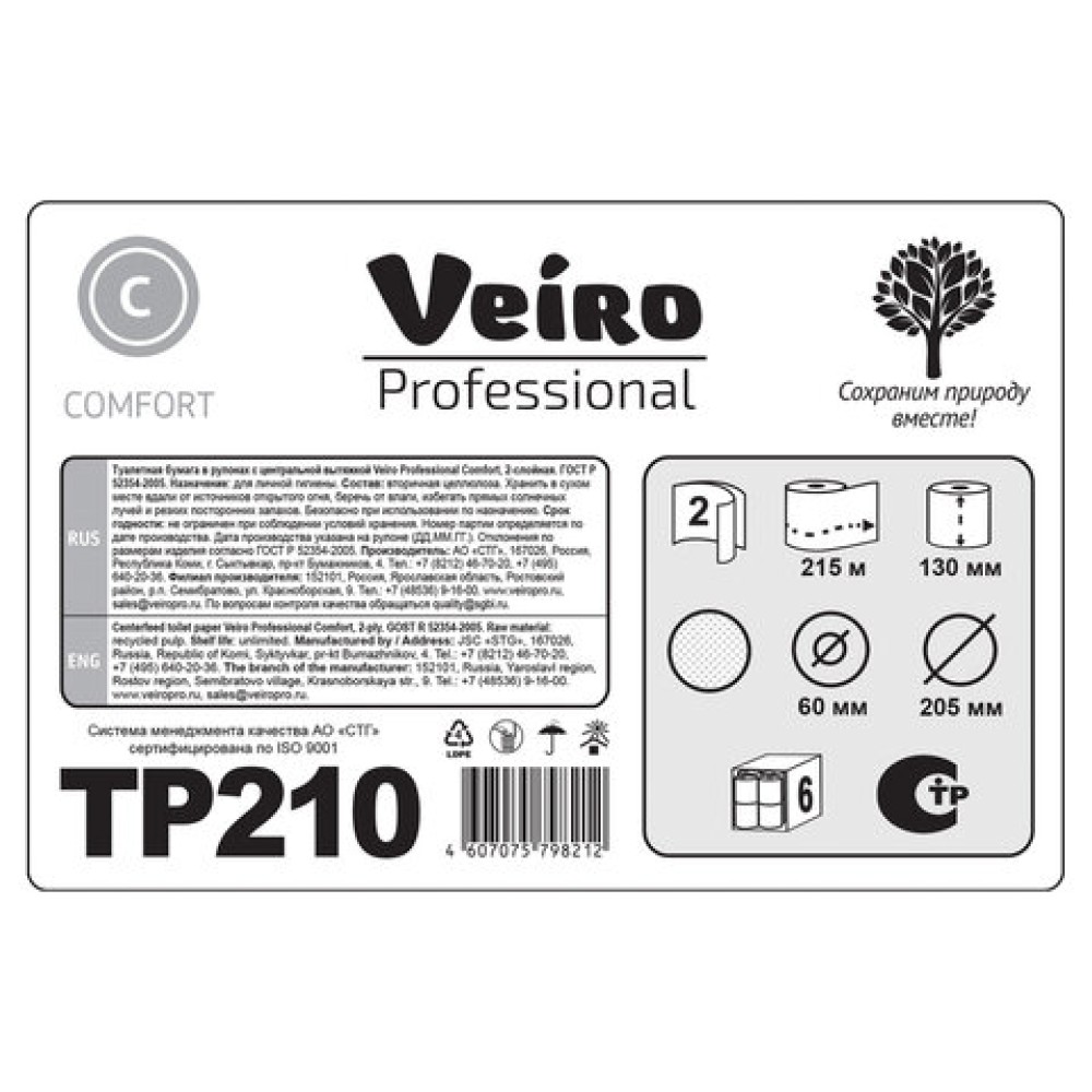 Бумага туалетная 215 м, VEIRO (Система T8), КОМПЛЕКТ 6 шт., с центральной вытяжкой, Comfort, 2-слойная, TP210 в Екатеринбург — практичное решение для дома, офиса и бизнеса. Изготовлено из качественных материалов, отличается надёжностью и удобством в использовании.