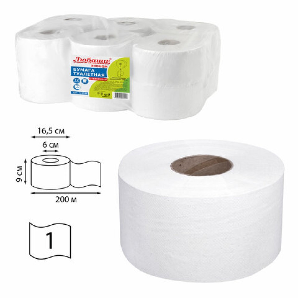 Бумага туалетная ЛЮБАША (Система T2) 1-слойная 12 рулонов по 200 метров, отбеленная, 124546, 124546 (МП-40) — купить в Екатеринбурге