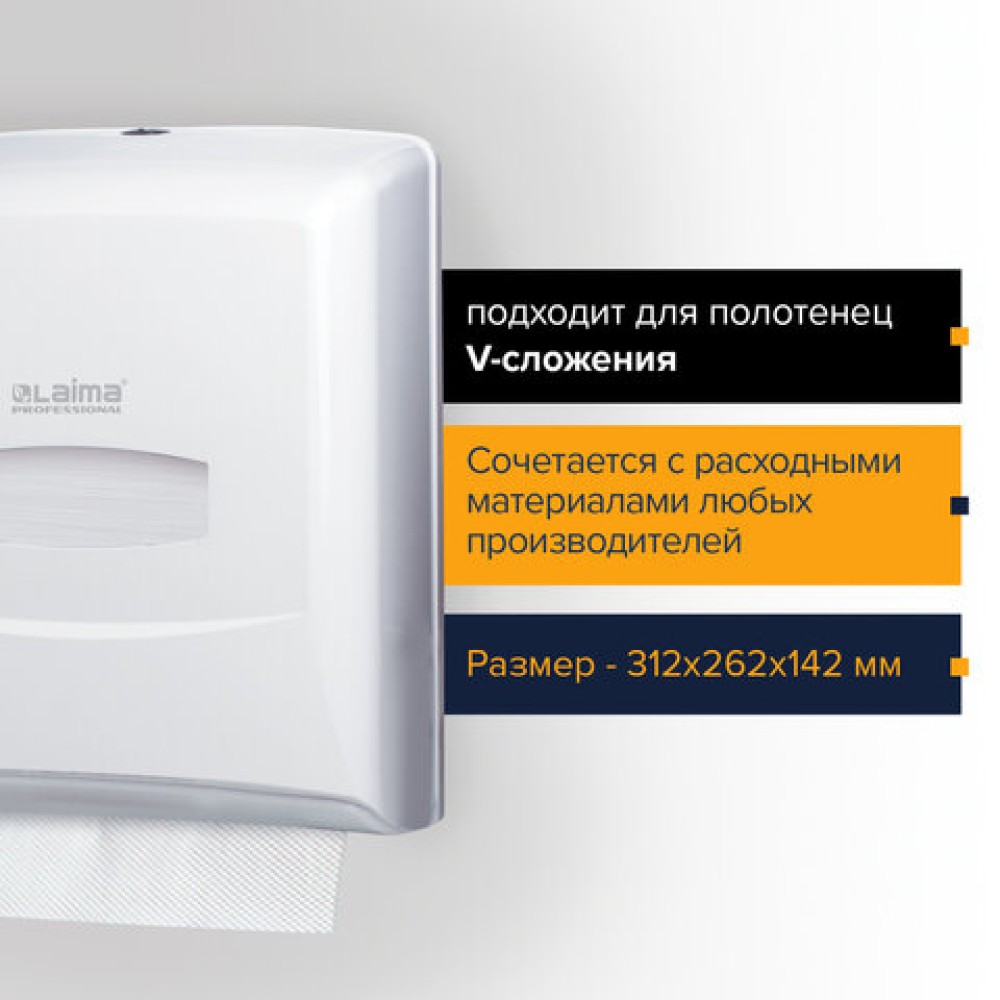 Диспенсер для полотенец LAIMA PROFESSIONAL CLASSIC (Система H3), V-сложения, белый, ABS-пластик, 601426 — купить в Екатеринбурге