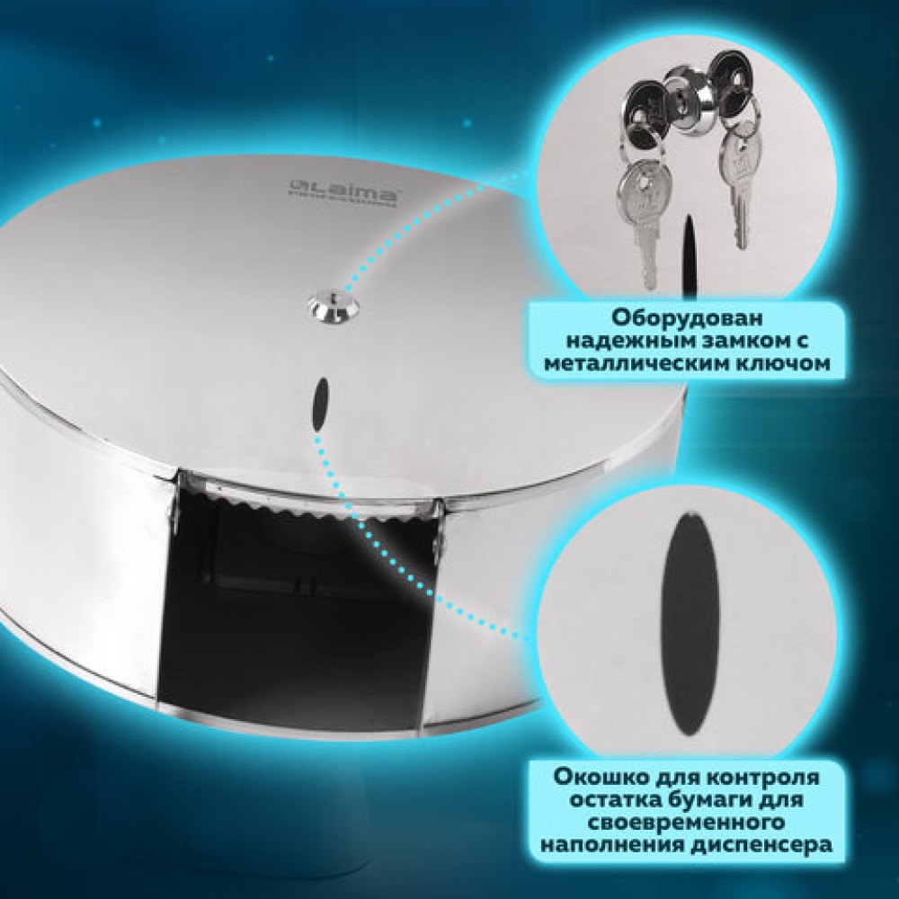 Диспенсер для туалетной бумаги LAIMA PROFESSIONAL INOX, (Система T1) БОЛЬШОЙ, нержавеющая сталь, зеркальный, 605701 — практичное решение для использования дома, в офисе и в коммерческих помещениях. Качественный материал обеспечивает долговечность и удобство эксплуатации.