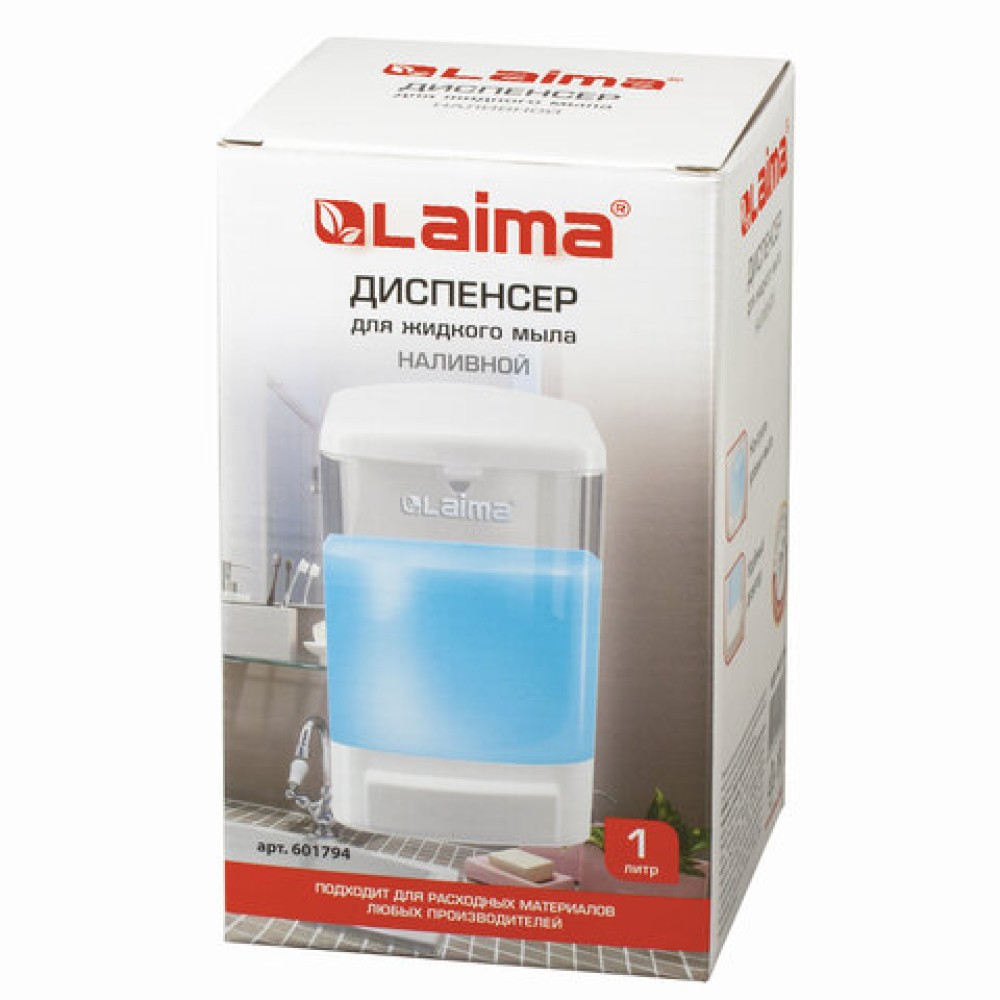 Дозатор для жидкого мыла LAIMA, НАЛИВНОЙ, 1 л, белый, ABS-пластик, 601794 — купить в Екатеринбурге