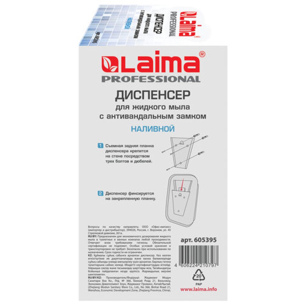 Дозатор для жидкого мыла LAIMA PROFESSIONAL INOX (гарантия 3 года), 1 л, нержавеющая сталь, матовый, 605395 — практичное решение для использования дома, в офисе и в коммерческих помещениях. Качественный материал обеспечивает долговечность и удобство эксплуатации.
