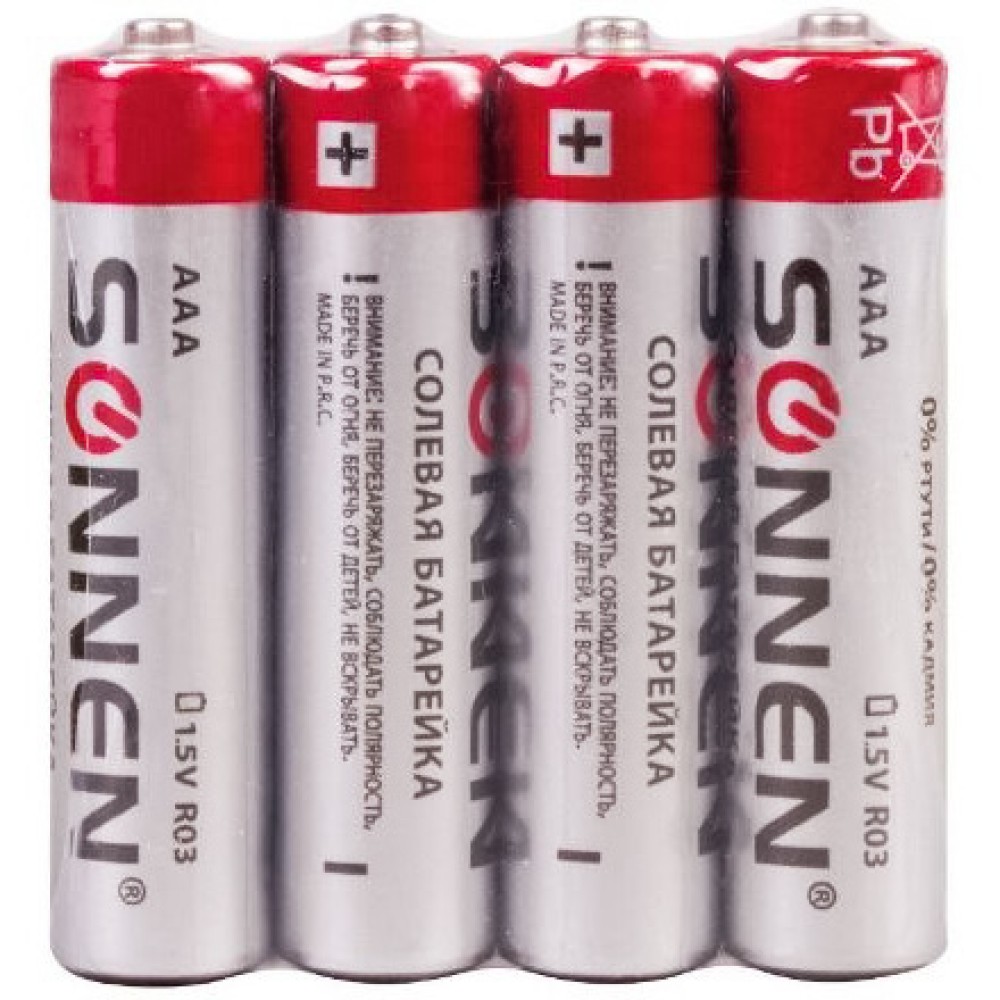 Элемент питания солевой мизин. R03/4S AAA SONNEN (4 шт.) (1/6/300 упак.) 451098 — купить в Екатеринбурге