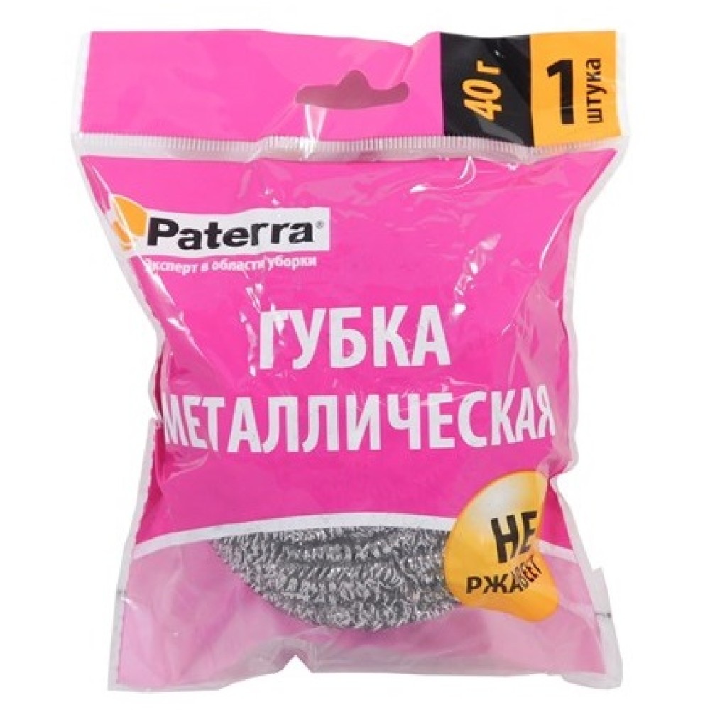 Губка металлическая (1 шт.) 40 г в инд. упаковке Paterra нерж. спираль (1/100 шт.) 406-147 — купить в Екатеринбурге