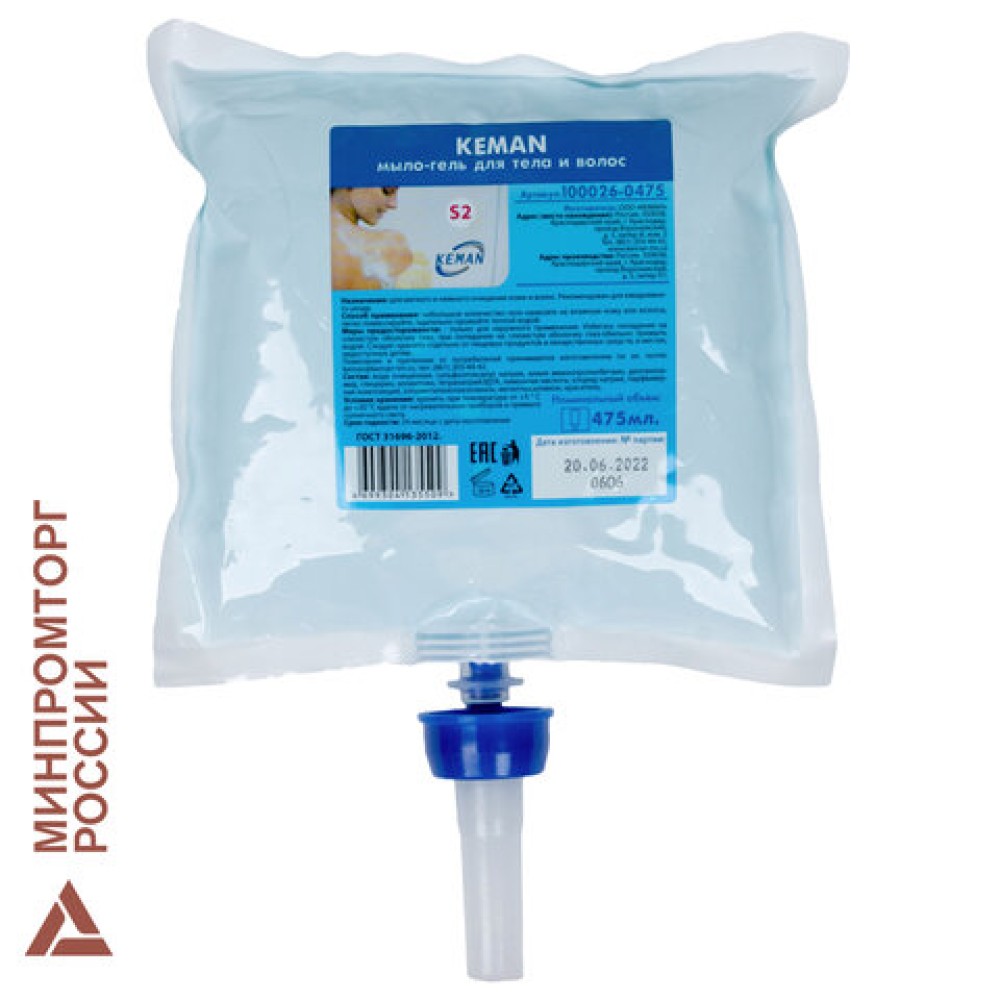 Картридж с жидким мылом-гелем для тела и волос одноразовый (Система S2), 0,475 л, KEMAN, 100026-0475 — купить в Екатеринбурге