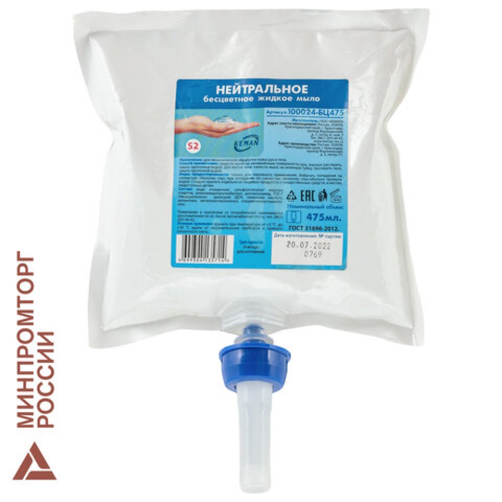 Картридж с жидким мылом одноразовый (Система S2) "Нейтральное", бесцветное, 0,475 л, KEMAN, 100024-БЦ475 — купить в Екатеринбурге