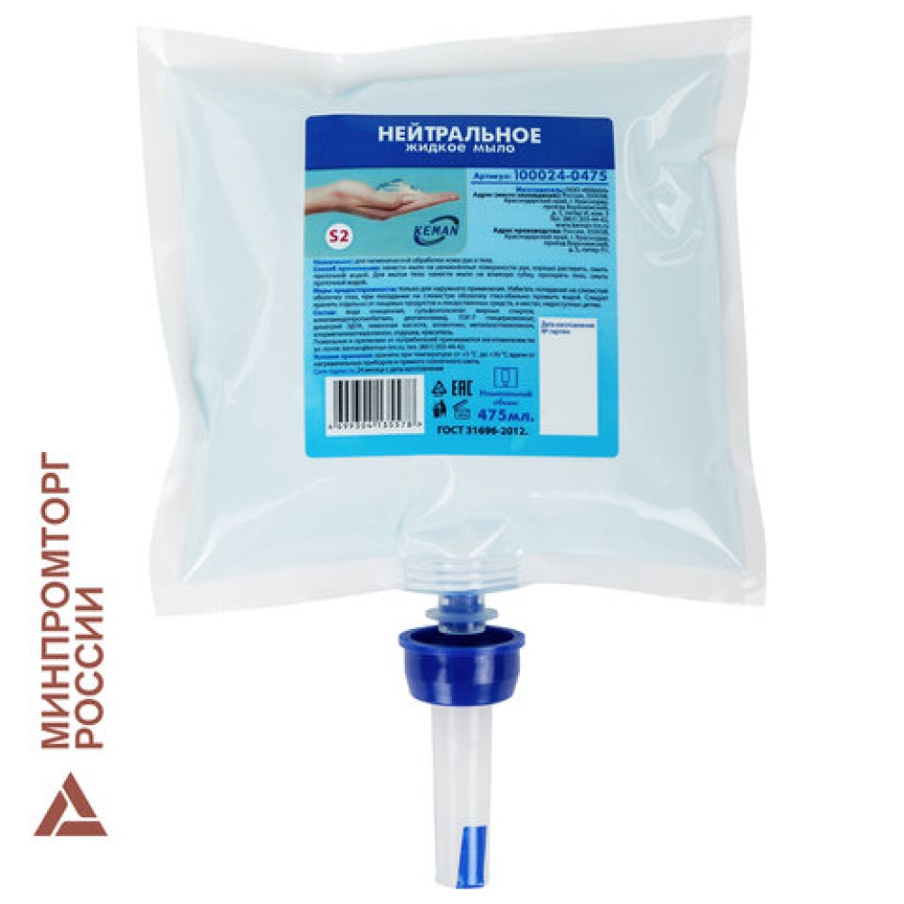 Картридж с жидким мылом одноразовый (Система S2) "Нейтральное", синее, 0,475 л, KEMAN, 100024-0475 в Екатеринбург — практичное решение для дома, офиса и бизнеса. Изготовлено из качественных материалов, отличается надёжностью и удобством в использовании.