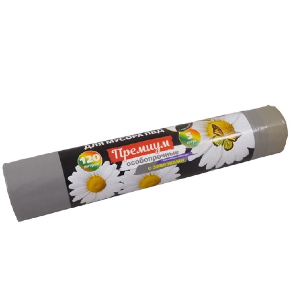 Мешок д/мусора ПВД 120 л (5 шт.) рулон с завязками серый ПРЕМИУМ (1/24 шт.) ПЗВ-120/5/24/С — купить в Екатеринбурге
