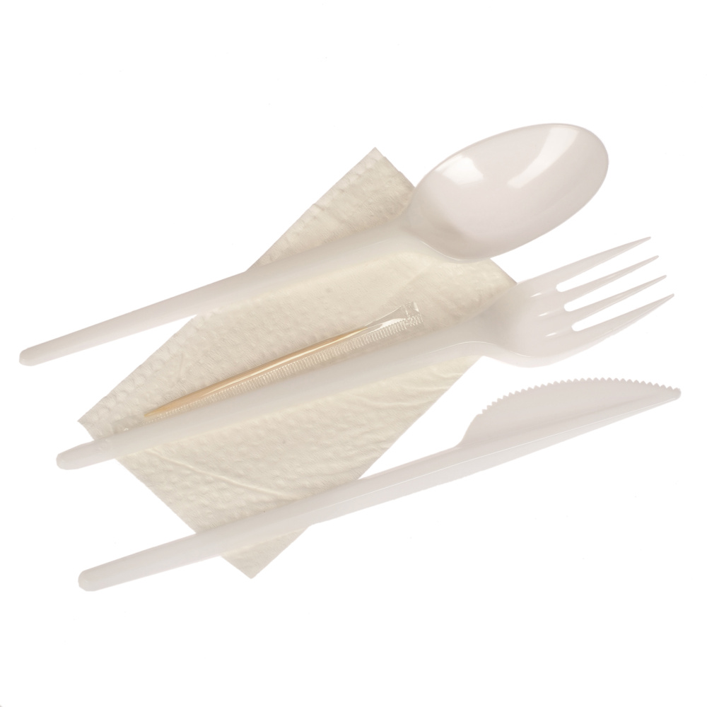 Набор 5/1 Эконом белый вилка/ложка/нож/зубочистка/салфетка (1/200 шт.) Интропластик — купить в Екатеринбурге