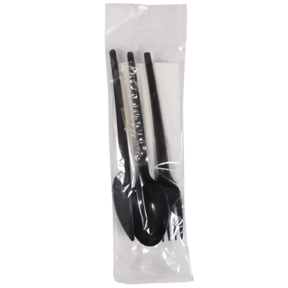 Набор 5/1 Эконом ЧЕРНЫЙ вилка/ложка/нож/зубочистка/салфетка (1/300 шт.) Н51-027 — купить в Екатеринбурге