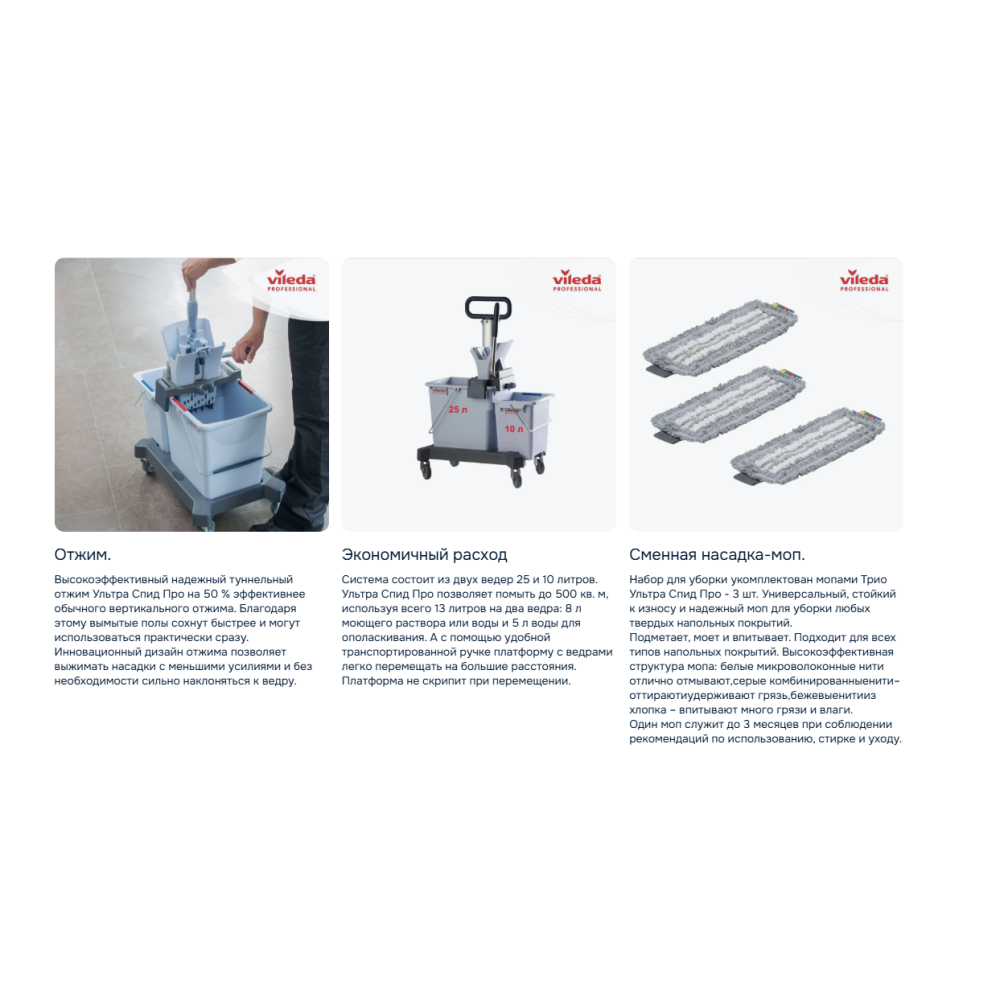 Набор для уборки Ультра Спид Про Всё включено, Vileda Professional двухведерный, 166376 в Екатеринбург — практичное решение для дома, офиса и бизнеса. Изготовлено из качественных материалов, отличается надёжностью и удобством в использовании.