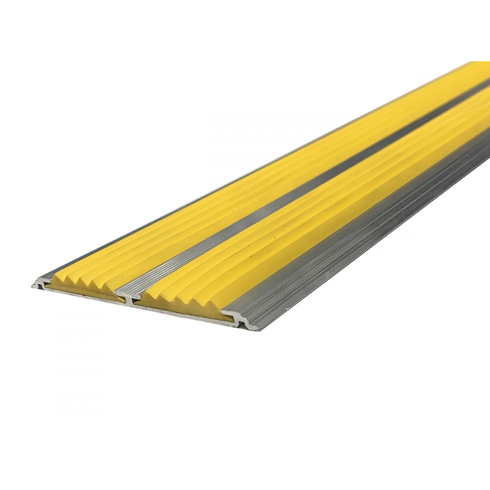 Накладка на ступени. Полоса алюминиевая с двумя резиновыми вставками. в Екатеринбург — практичное решение для дома, офиса и бизнеса. Изготовлено из качественных материалов, отличается надёжностью и удобством в использовании.