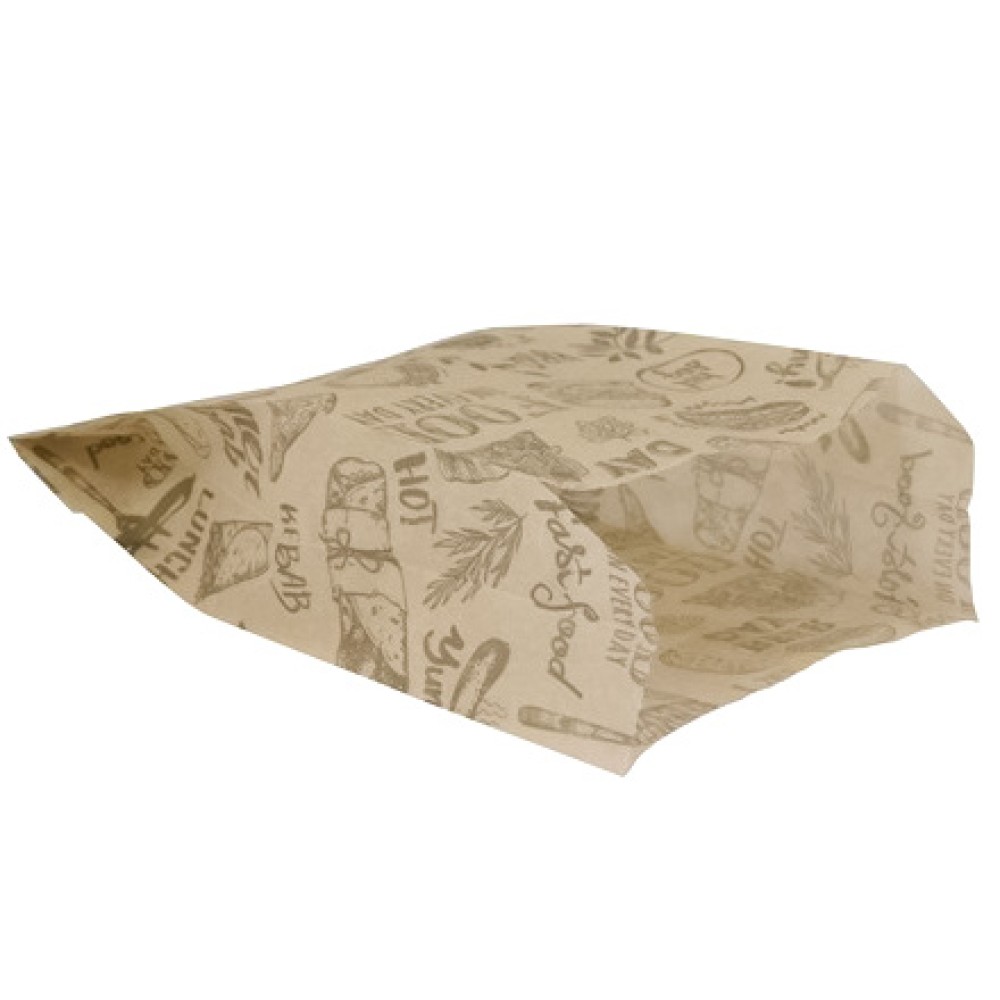 Пакет бумажный 175х100+50 бежевый подпергамент с печатью Фаст фуд ViRiDo (100/3000 шт.) — купить в Екатеринбурге