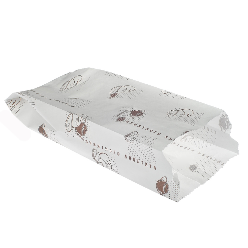 Пакет бумажный 210х 90+40 белый с печатью Приятного аппетита Влагостойкий (100/2500 шт.) — купить в Екатеринбурге
