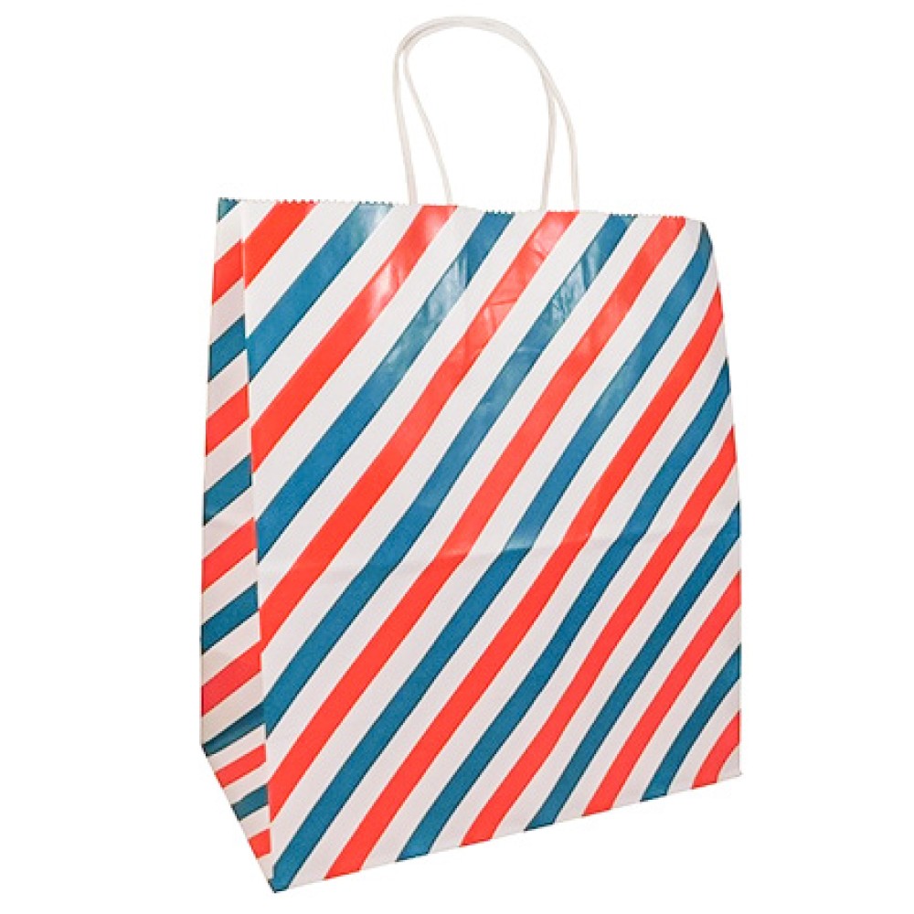 Пакет бумажный с кручеными ручками 220х120х250 80 г с печатью Широкая полоса (25/250 шт.) 113143 — купить в Екатеринбурге