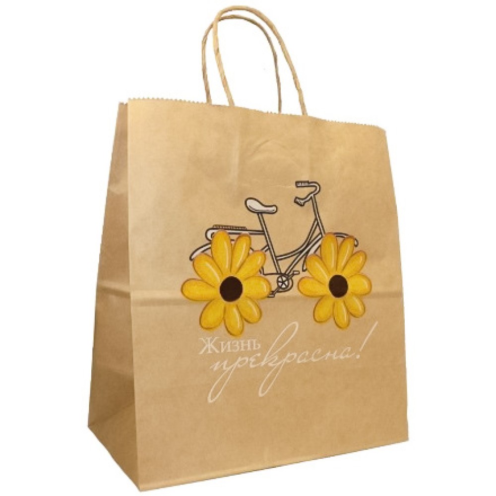 Пакет бумажный с кручеными ручками 220х120х250 80 г с печатью Жизнь прекрасна (25/250 шт.) 110579 — купить в Екатеринбурге