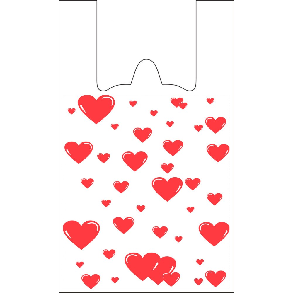 Пакет-майка ПНД 28+13х50 (12 мкм) Сердечки (100/2500 шт.) — купить в Екатеринбурге