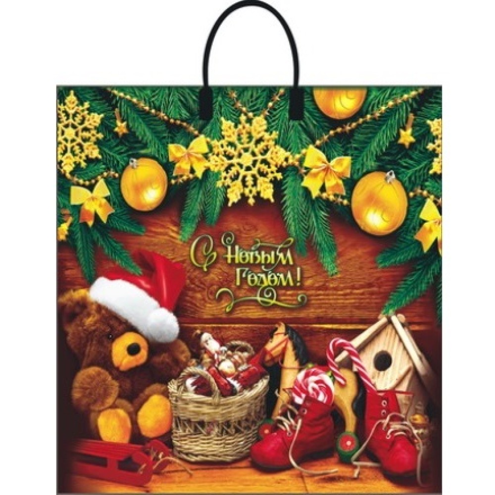 Пакет с пластиковой ручкой ПВД 38х35 (90 мкм) Новогодняя затея лам. (10/100 шт.) Интерпак — купить в Екатеринбурге