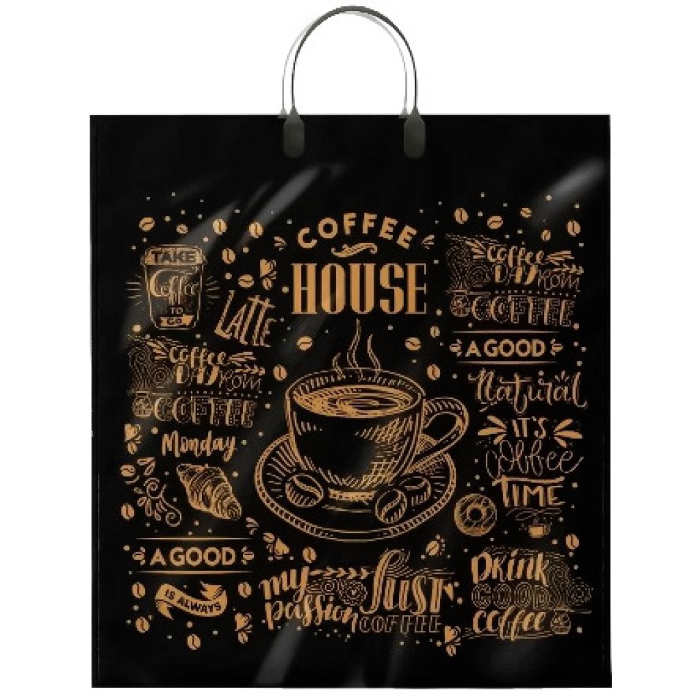 Пакет с пластиковой ручкой ПВД 40х44 (100 мкм) Кофейня черн. (10/100 шт.) Интерпак — купить в Екатеринбурге