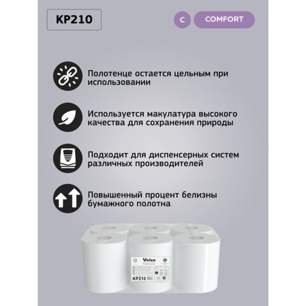 Полотенца бумажные с центральной вытяжкой 200 м, VEIRO (Система M2) COMFORT, 1-слойные, белые, КОМПЛЕКТ 6 рулонов, KP210, КР210 в Екатеринбург — практичное решение для дома, офиса и бизнеса. Изготовлено из качественных материалов, отличается надёжностью и удобством в использовании.