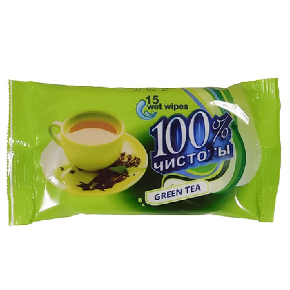 Салфетки влажные (15 шт.) 100% Чистоты Зеленый чай (1/160 шт.) — купить в Екатеринбурге