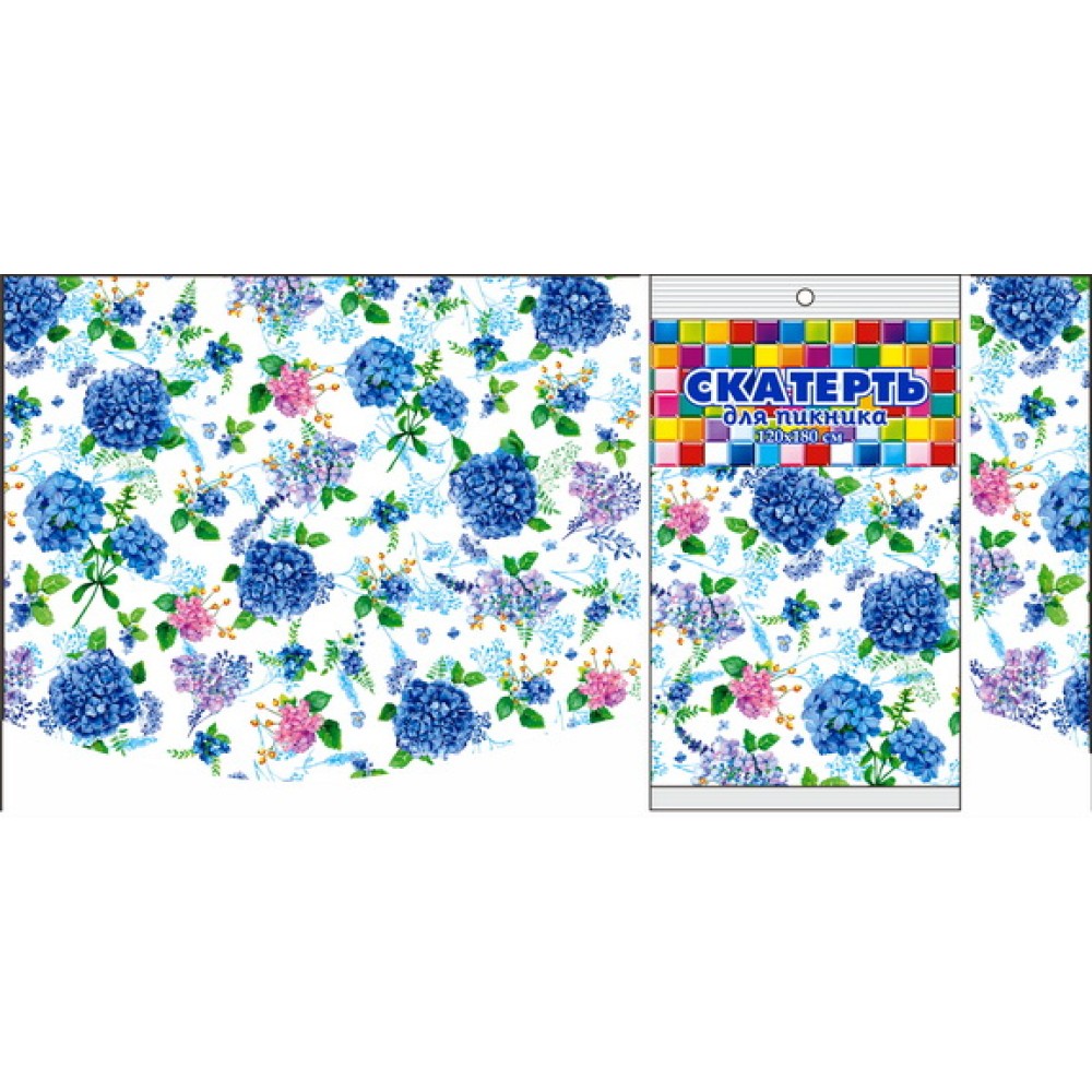 Скатерть ПВД 120х180 (35 мкм) Гортензия (1/50 шт.) Интерпак — купить в Екатеринбурге