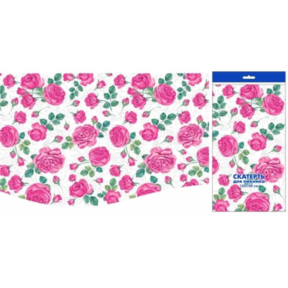 Скатерть ПВД 120х180 (35 мкм) Розовые розы (1/50 шт.) Интерпак — купить в Екатеринбурге
