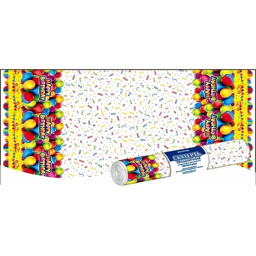 Скатерть в рулоне ПВД 120х160 (35 мкм) День рождения (5 шт.) (1/25 шт.) Интерпак — купить в Екатеринбурге