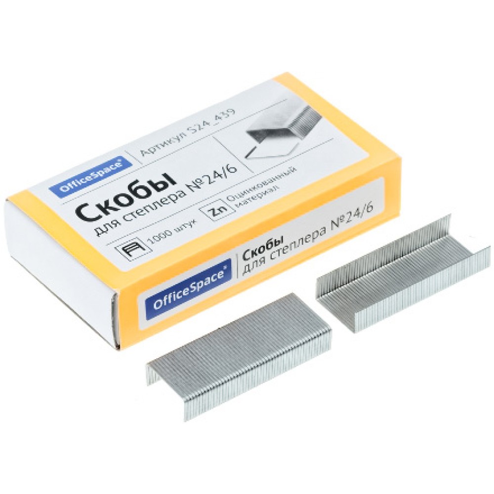Скобы для степлера №24/6 \'\'OfficeSpace\'\' оцинкованные, 1000 шт. (1/10/40 шт.) в Екатеринбург — практичное решение для дома, офиса и бизнеса. Изготовлено из качественных материалов, отличается надёжностью и удобством в использовании.