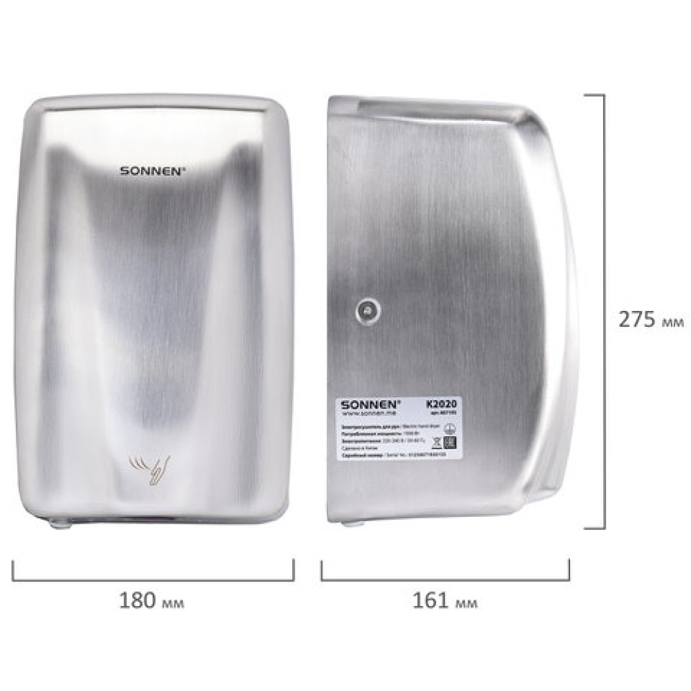 Сушилка для рук ВЫСОКОСКОРОСТНАЯ АНТИВАНДАЛЬНАЯ SONNEN K2020, 1000 Вт, 100 м/с, IPX3, 72 дБ, нержавеющая сталь, 607193 — купить в Екатеринбурге