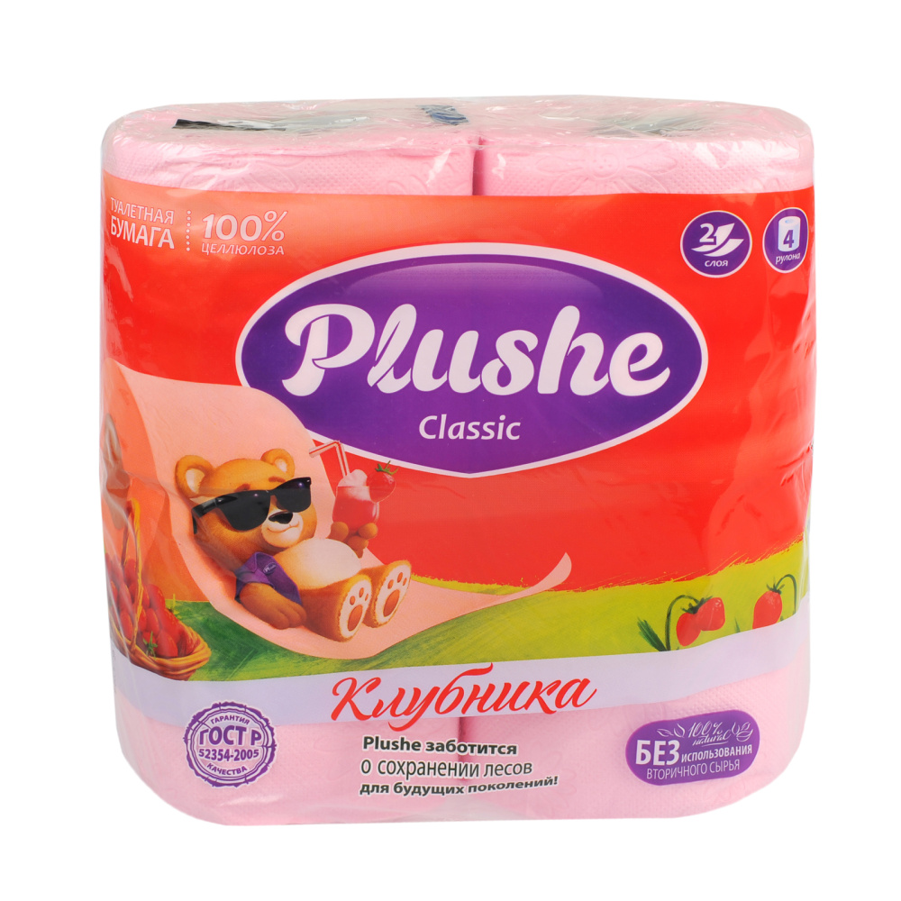 Туалетная бумага 2 сл. 4 шт. Plushe Classic Клубника (1/12 шт.) — купить в Екатеринбурге