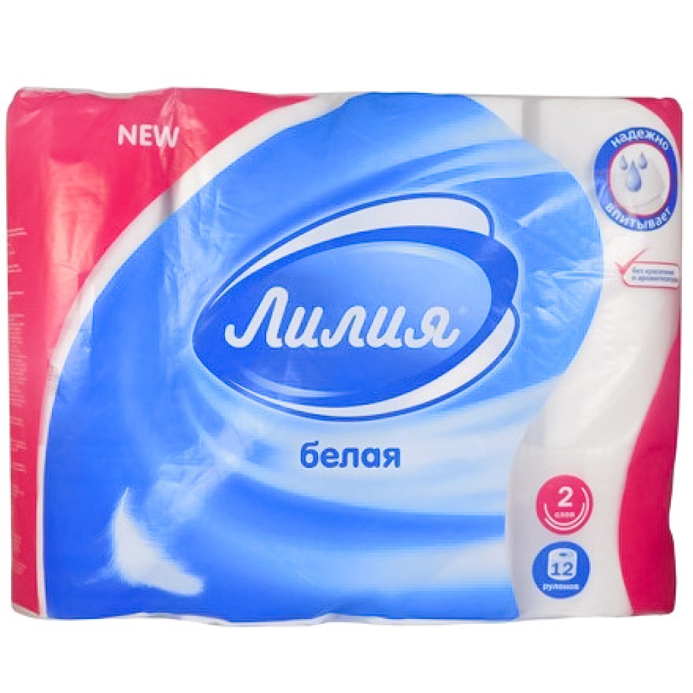 Туалетная бумага 2 сл.12 шт. Лилия Белая (1/8 шт.) 5407 — купить в Екатеринбурге