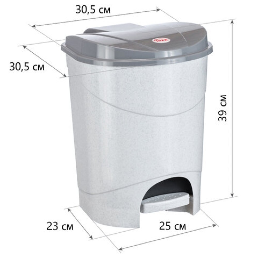 Ведро мусорное с КРЫШКОЙ и ПЕДАЛЬЮ 19 литров, 39х30,5х30,5 см, серое, IDEA, М2892 — купить в Екатеринбурге