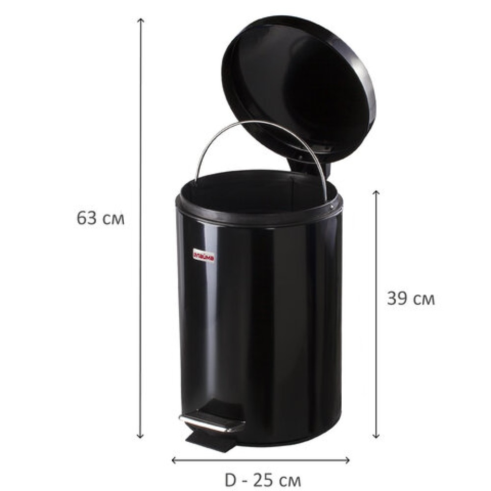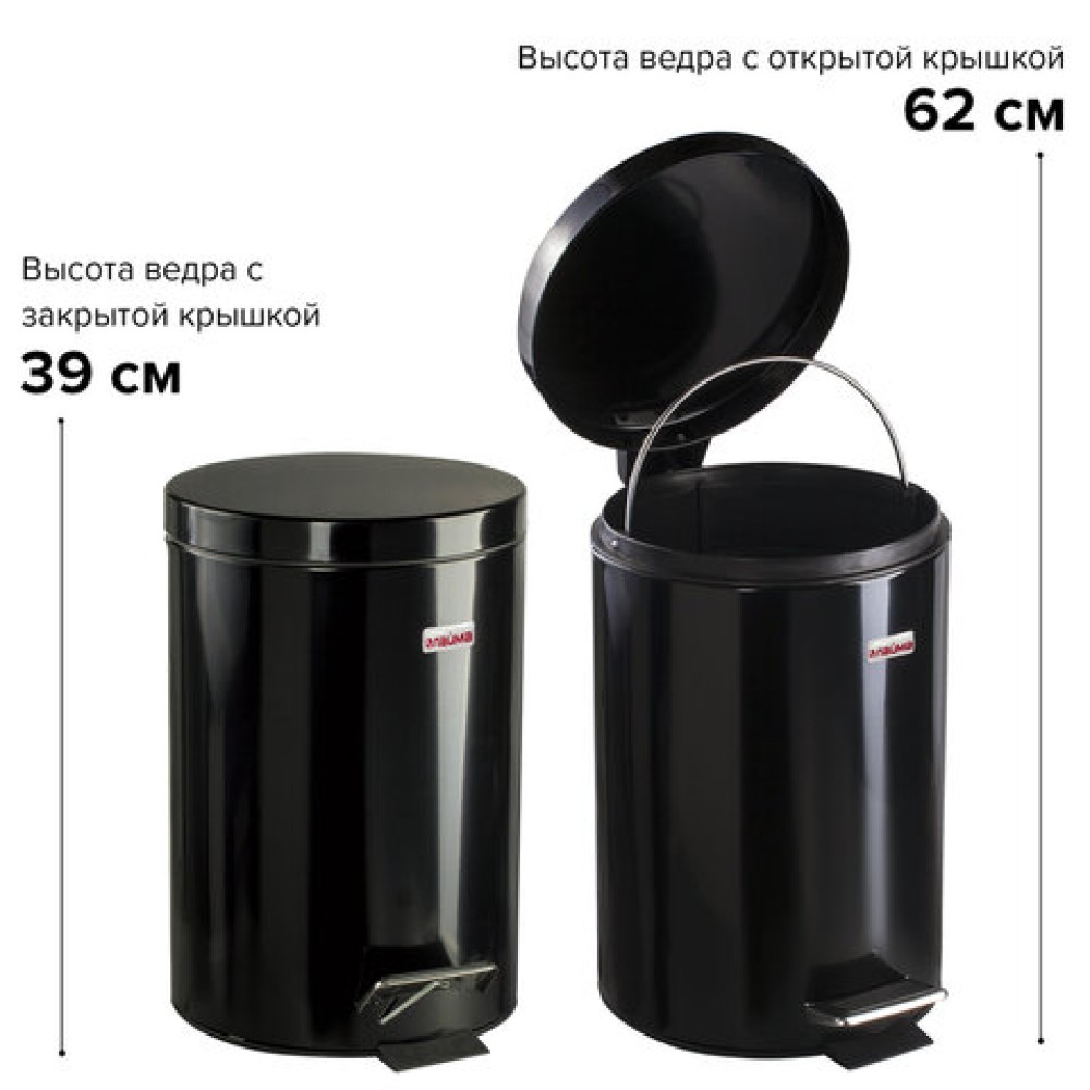 Ведро мусорное с педалью 12 литров "Classic", ЧЕРНОЕ ГЛЯНЦЕВОЕ, металлическое, со съемным внутренним ведром, LAIMA, 602850 — купить в Екатеринбурге