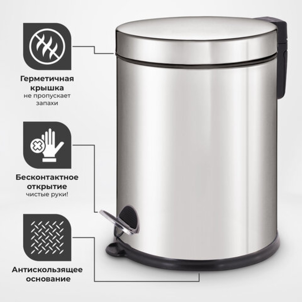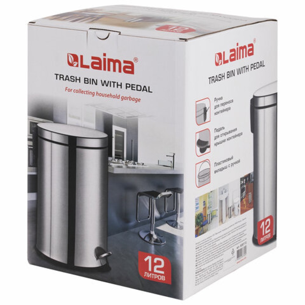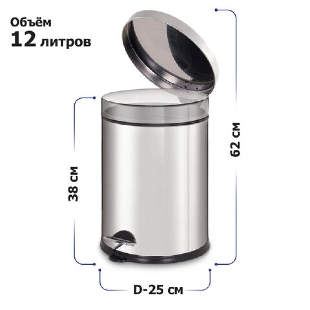 Ведро мусорное с педалью 12 литров "Classic Plus", ЗЕРКАЛЬНОЕ, нержавеющая сталь, со съемным внутренним ведром, LAIMA, ТУРЦИЯ, 608113 — купить в Екатеринбурге