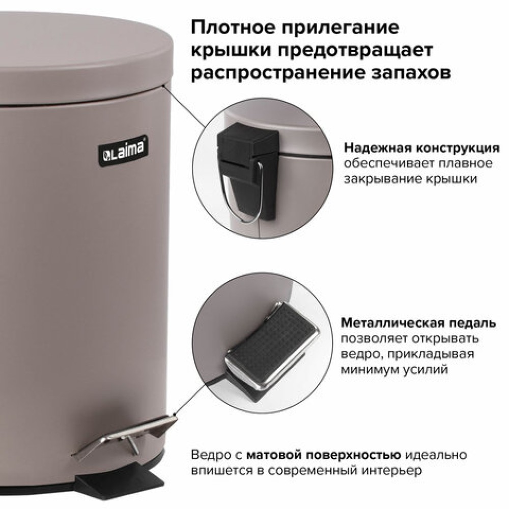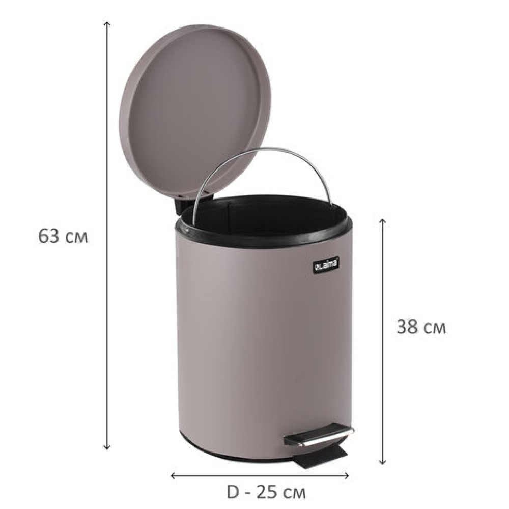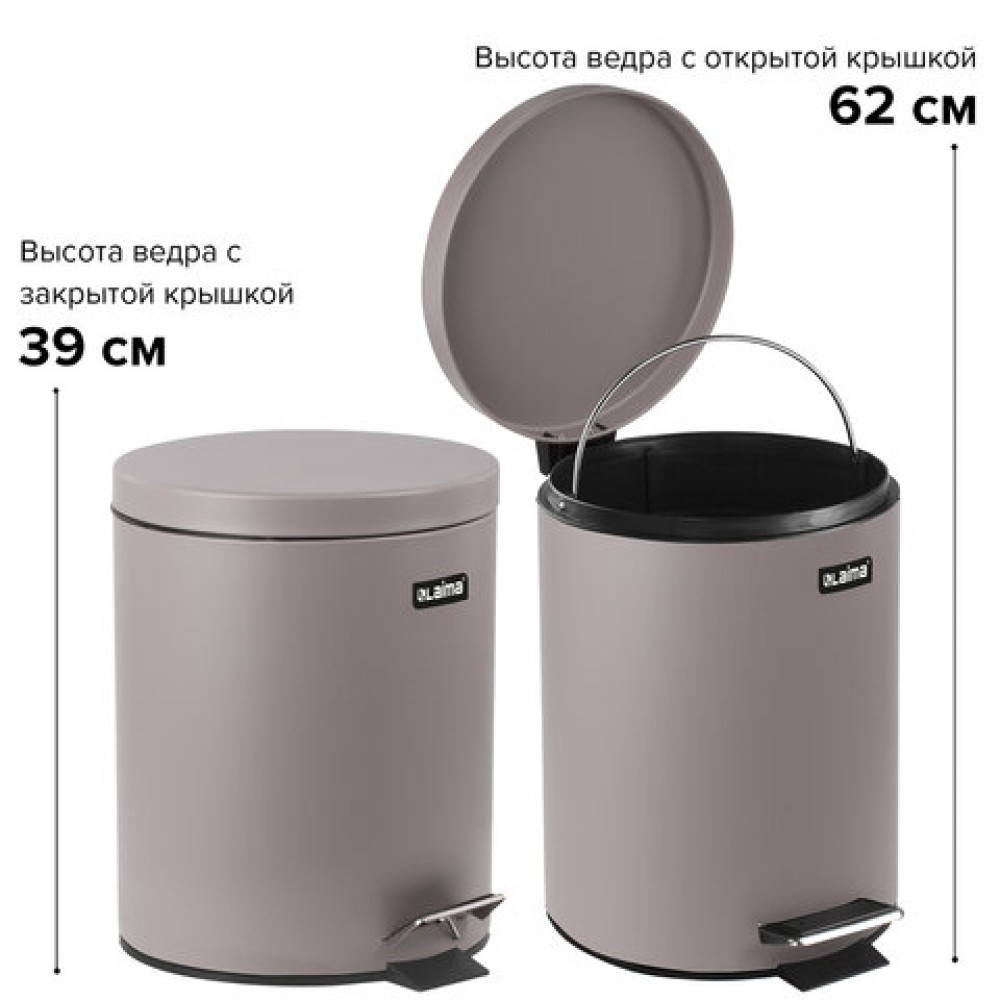 Ведро мусорное с педалью 12 литров "Classic", СЕРОЕ МАТОВОЕ, металлическое, со съемным внутренним ведром, LAIMA, 604944 в Екатеринбург — практичное решение для дома, офиса и бизнеса. Изготовлено из качественных материалов, отличается надёжностью и удобством в использовании.
