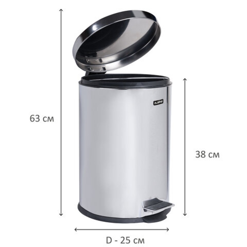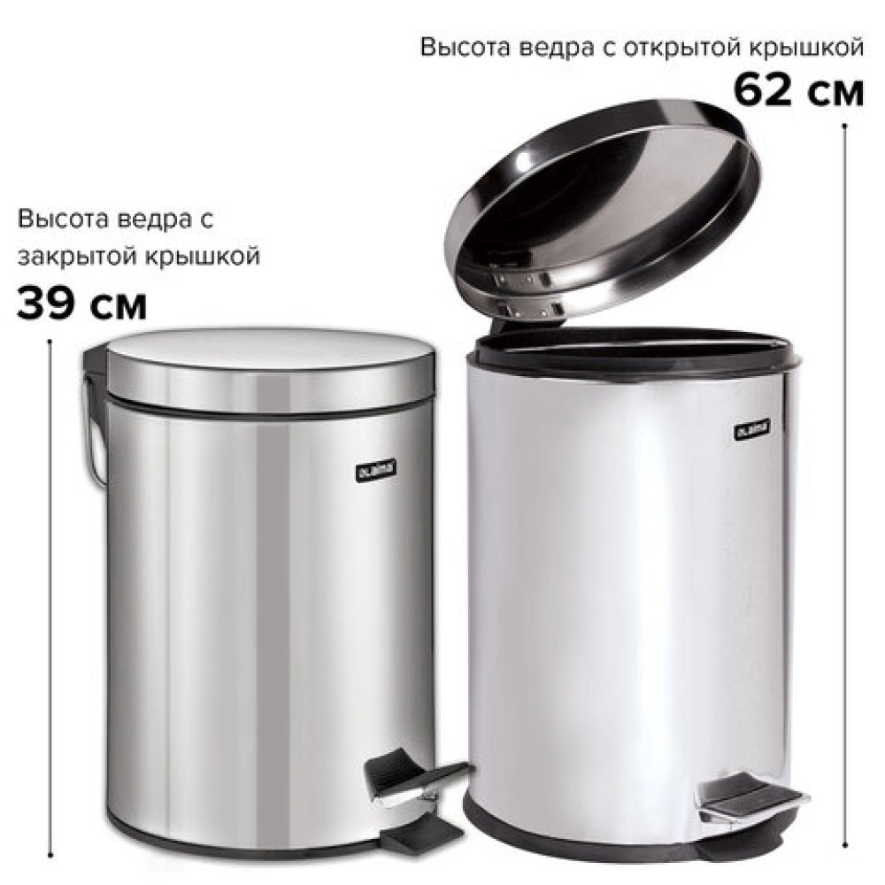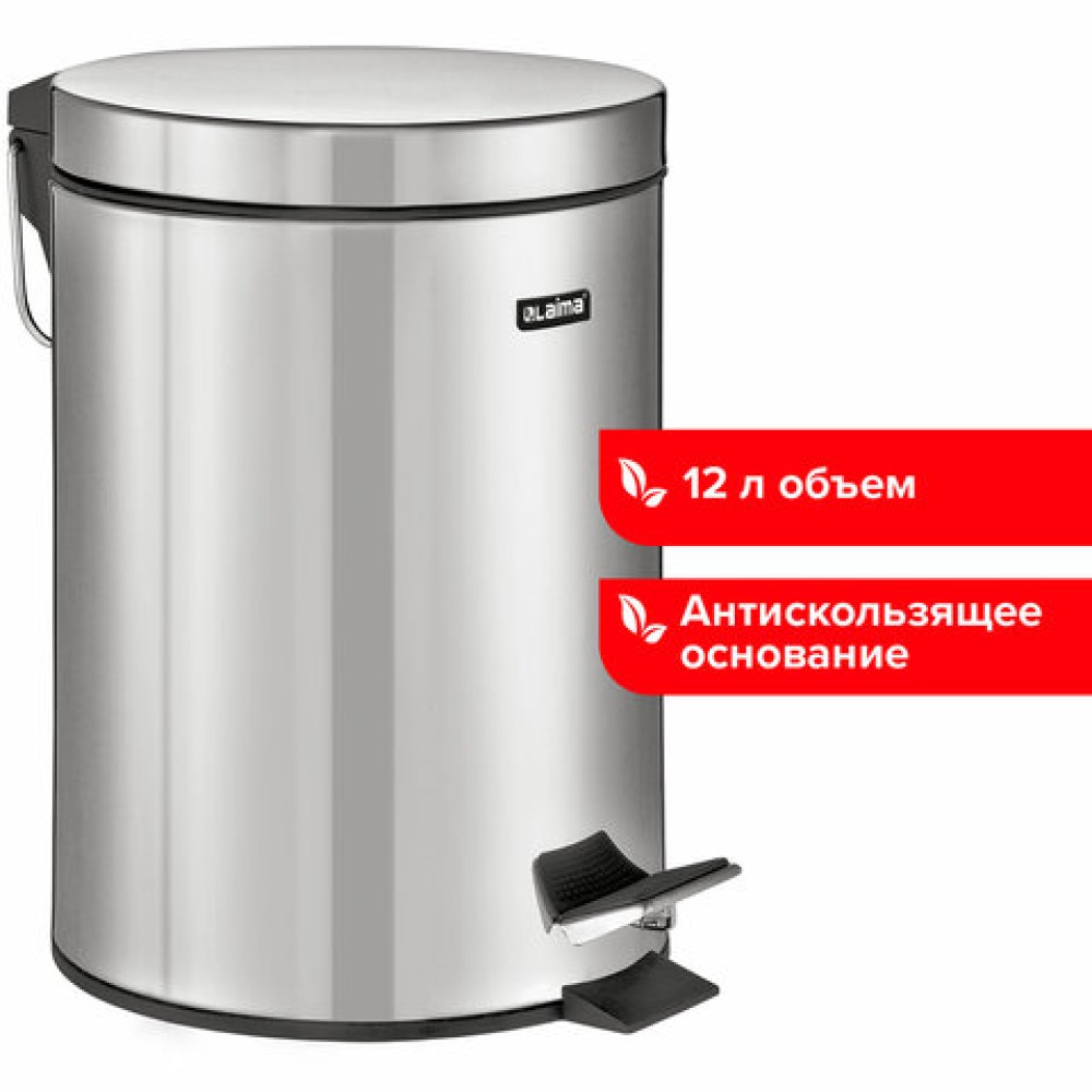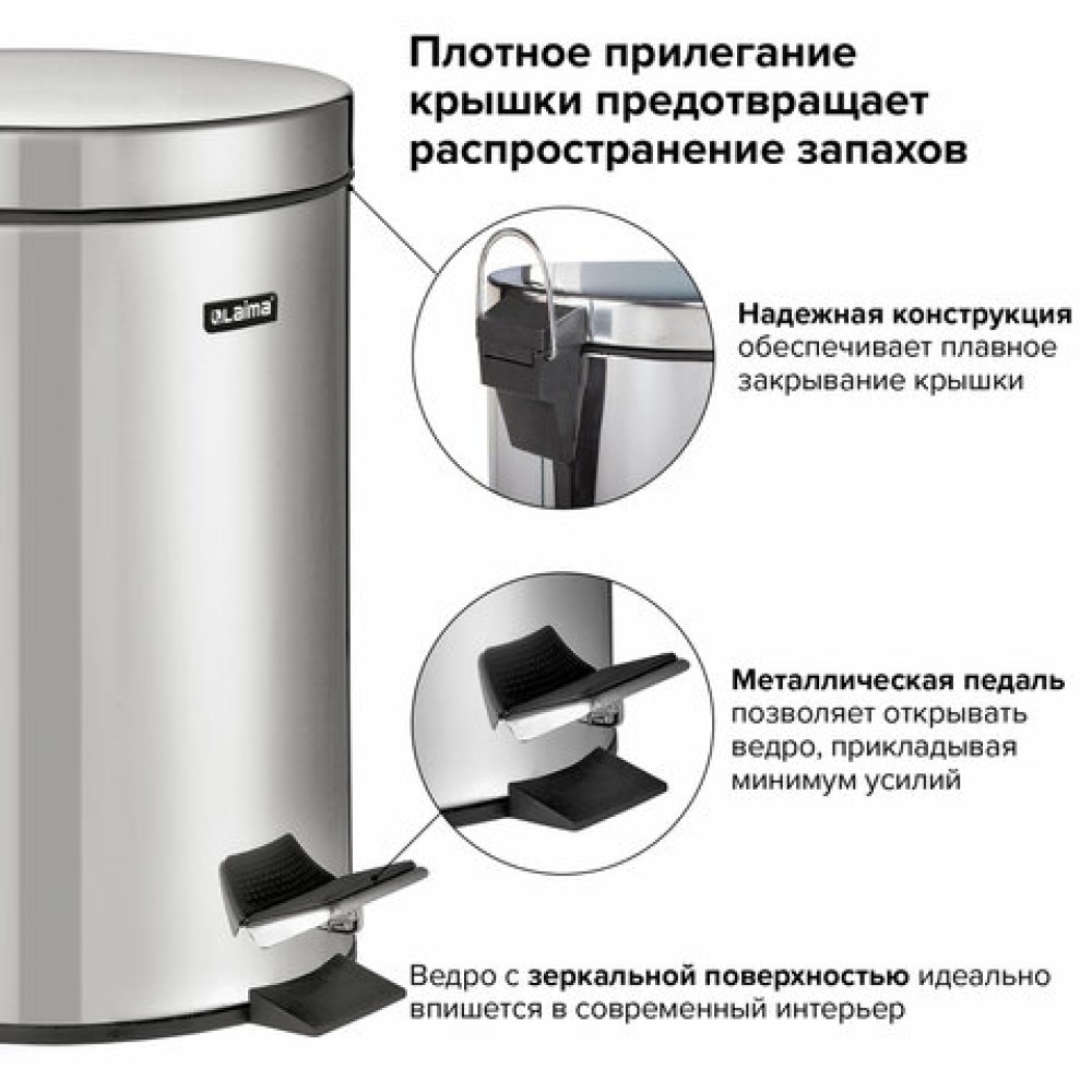 Ведро мусорное с педалью 12 литров "Classic", ЗЕРКАЛЬНОЕ, нержавеющая сталь, со съемным внутренним ведром, LAIMA, 232261 — купить в Екатеринбурге