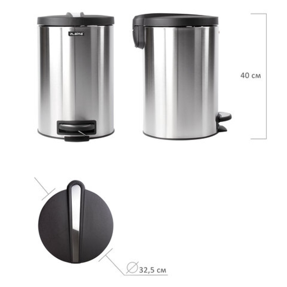 Ведро мусорное с педалью 12 литров "Modern", МАТОВОЕ, нержавеющая сталь, со съемным внутренним ведром, LAIMA, 232264 — купить в Екатеринбурге