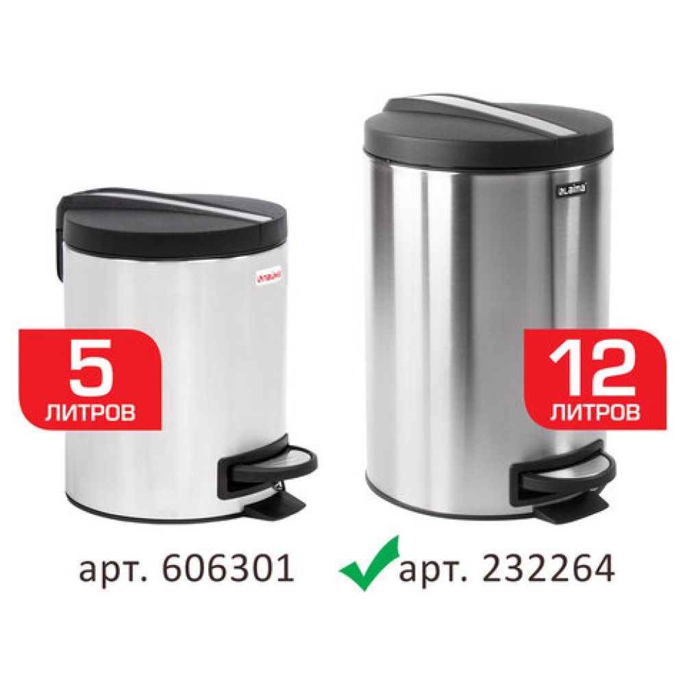 Ведро мусорное с педалью 12 литров "Modern", МАТОВОЕ, нержавеющая сталь, со съемным внутренним ведром, LAIMA, 232264 в Екатеринбург — практичное решение для дома, офиса и бизнеса. Изготовлено из качественных материалов, отличается надёжностью и удобством в использовании.
