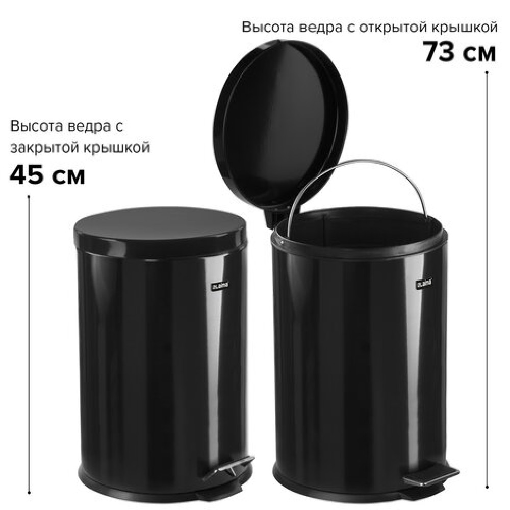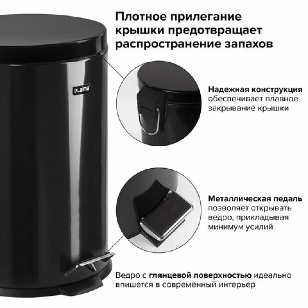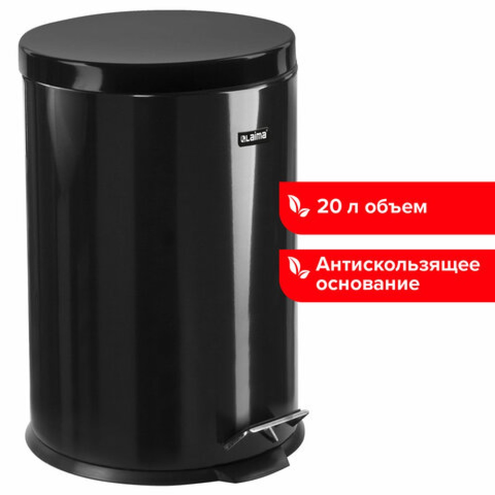 Ведро мусорное с педалью 20 литров "Classic", ЧЕРНОЕ ГЛЯНЦЕВОЕ, металлическое, со съемным внутренним ведром, LAIMA, 604945 — купить в Екатеринбурге