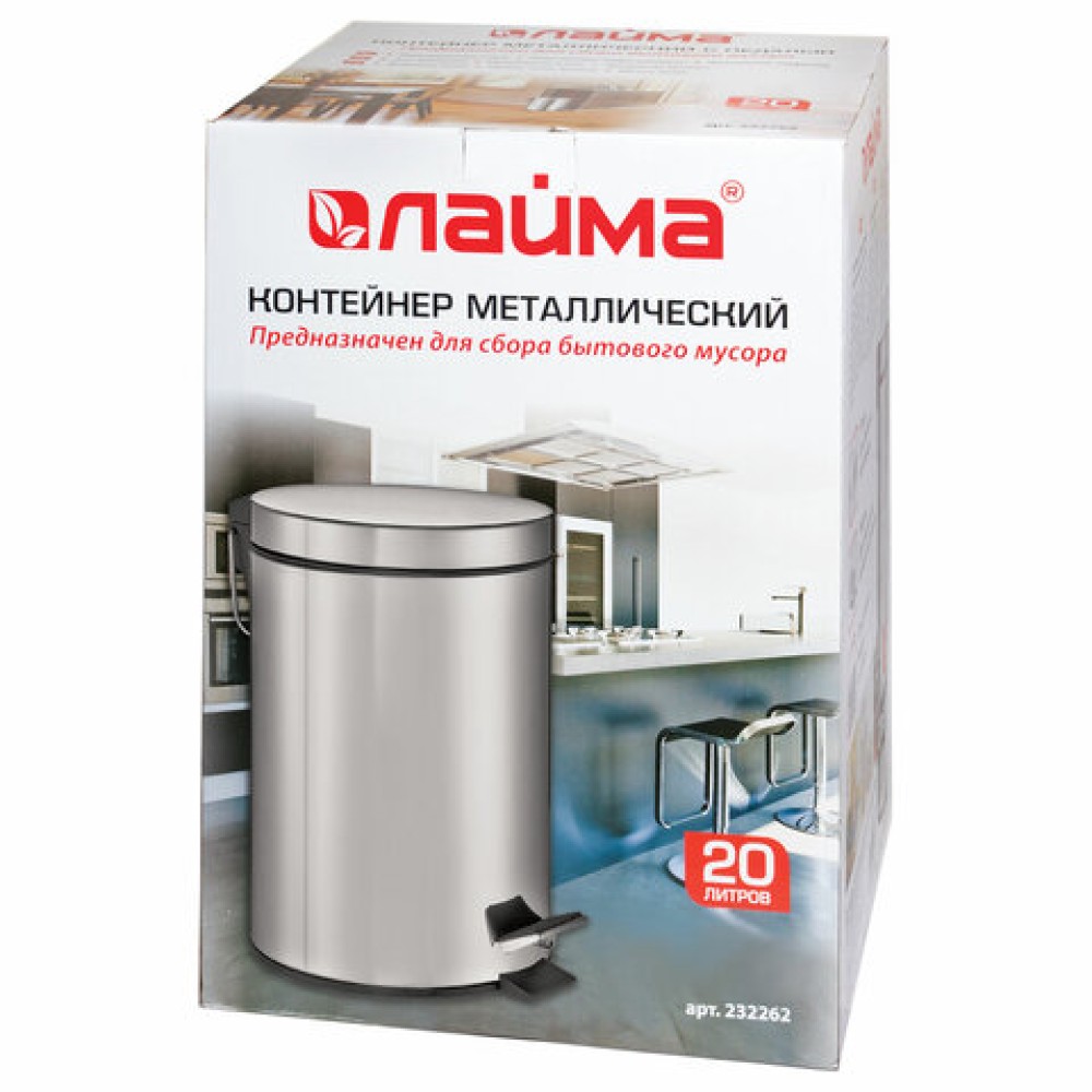 Ведро мусорное с педалью 20 литров "Classic", ЗЕРКАЛЬНОЕ, нержавеющая сталь, со съемным внутренним ведром, LAIMA, 232262 — практичное решение для использования дома, в офисе и в коммерческих помещениях. Качественный материал обеспечивает долговечность и удобство эксплуатации.
