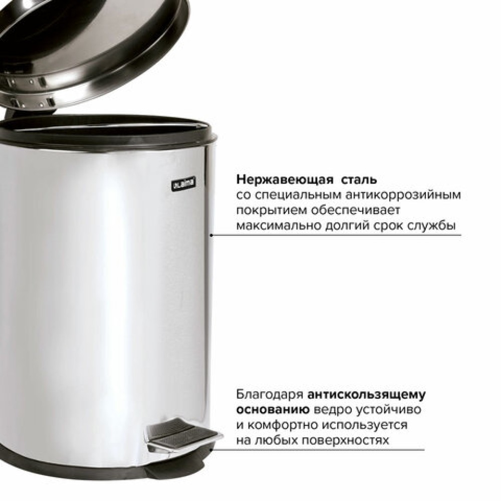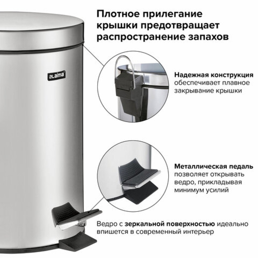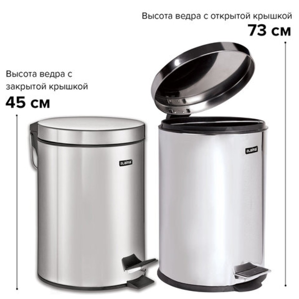 Ведро мусорное с педалью 20 литров "Classic", ЗЕРКАЛЬНОЕ, нержавеющая сталь, со съемным внутренним ведром, LAIMA, 232262 — купить в Екатеринбурге