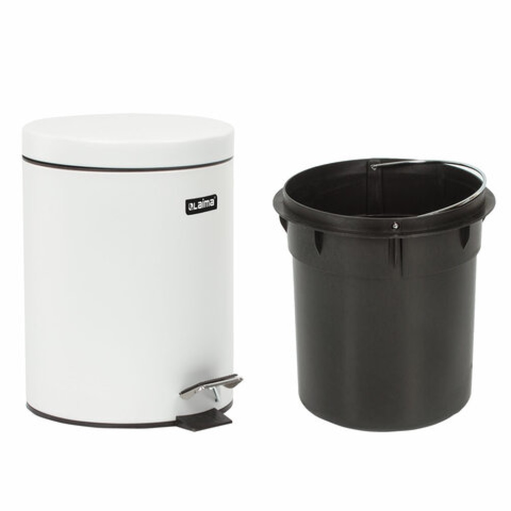 Ведро мусорное с педалью 5 литров "Classic", БЕЛОЕ ГЛЯНЦЕВОЕ, металлическое, со съемным внутренним ведром, LAIMA, 604947 — купить в Екатеринбурге