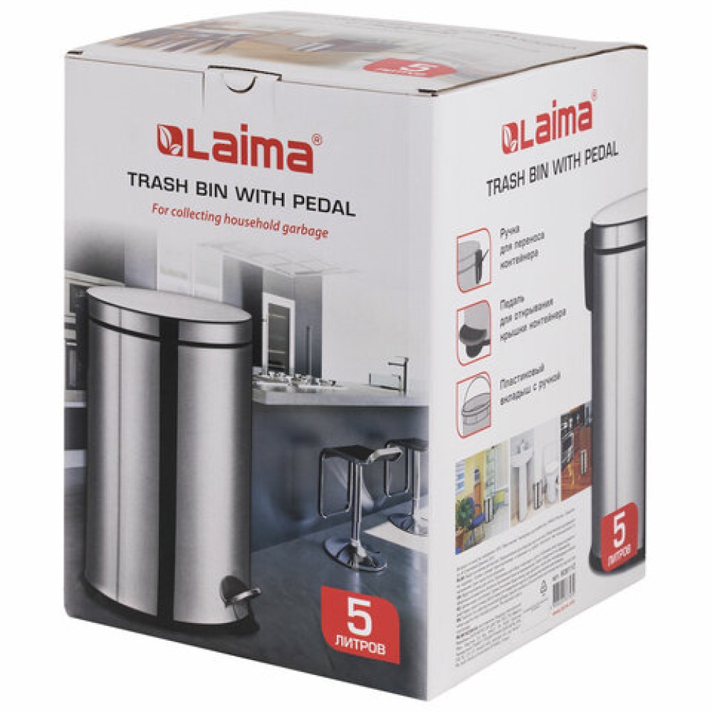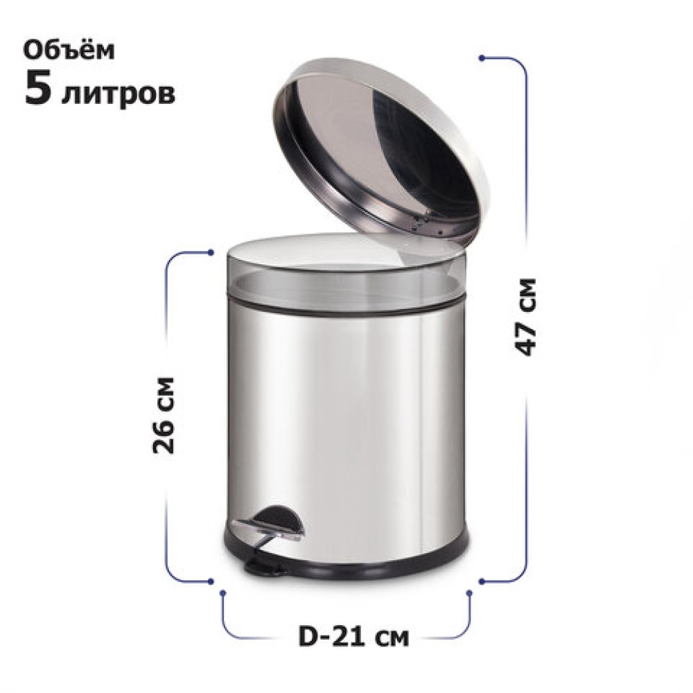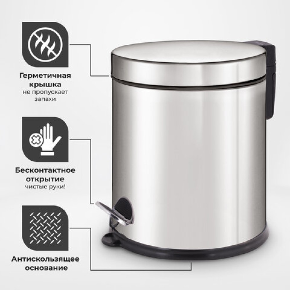 Ведро мусорное с педалью 5 литров "Classic Plus", ЗЕРКАЛЬНОЕ, нержавеющая сталь, со съемным внутренним ведром, LAIMA, ТУРЦИЯ, 608112 — купить в Екатеринбурге