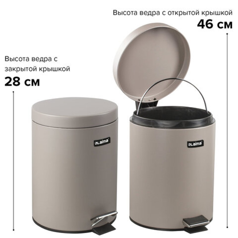 Ведро мусорное с педалью 5 литров "Classic", СЕРОЕ МАТОВОЕ, металлическое, со съемным внутренним ведром, LAIMA, 602489, 602849 — практичное решение для использования дома, в офисе и в коммерческих помещениях. Качественный материал обеспечивает долговечность и удобство эксплуатации.